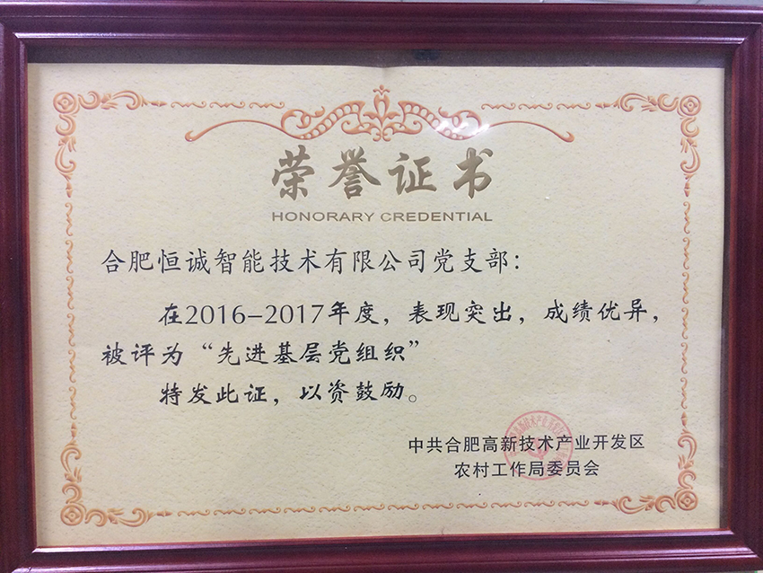 近日,高新區(qū)召開紀(jì)念建黨96周年大會(huì),合肥恒誠(chéng)智能技術(shù)有限公司黨支部榮獲“先進(jìn)基層黨組織”稱號(hào)。