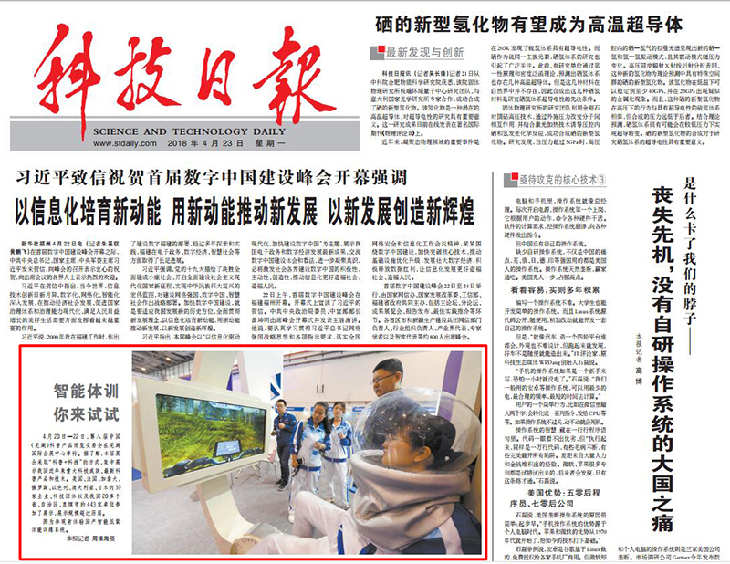 4月23日,《科技日報》頭版報道了我司自主研發(fā)的產品“勇闖高原”和“魔幻高原”該產品首次亮相蕪湖科博展取得了一致好評。