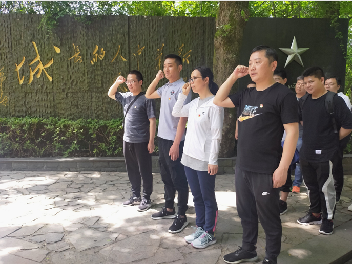 經(jīng)過(guò)一個(gè)半小時(shí)的車程,我們來(lái)到了新四軍江北指揮部舊址及紀(jì)念館。首先,公司黨支部書記張榮在舊址前致辭紀(jì)念建黨100周年,并帶領(lǐng)黨支部黨員們一起面對(duì)黨旗,重溫入黨誓詞,始終銘記入黨誓言,強(qiáng)化黨性修養(yǎng)。