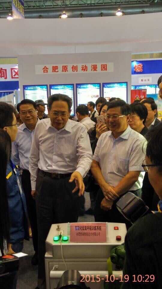 在合肥分會(huì)場(chǎng)的科技企業(yè)孵化器展區(qū)里,合肥恒誠(chéng)智能技術(shù)有限公司通過(guò)圖文與實(shí)物,設(shè)備展示與現(xiàn)場(chǎng)工作人員操作展示相結(jié)合的方式,全面展現(xiàn)了智能化低氧呼吸訓(xùn)練裝置產(chǎn)品。上午十點(diǎn)三十分左右,省委副書記、省長(zhǎng)李錦斌來(lái)到我公司展區(qū)前,與公司領(lǐng)導(dǎo)親切交流,并饒有興趣聽取了研發(fā)人員的介紹,仔細(xì)了解了智能低氧設(shè)備的研發(fā)背景、主要用途以及行業(yè)前景等情況。在現(xiàn)場(chǎng),李錦斌得知《智能化低氧呼吸訓(xùn)練裝置》產(chǎn)品的技術(shù)創(chuàng)新性強(qiáng)、生產(chǎn)設(shè)備技術(shù)先進(jìn),填補(bǔ)了國(guó)內(nèi)空白,達(dá)到國(guó)內(nèi)領(lǐng)先水平,并且具有很好的經(jīng)濟(jì)效益和社會(huì)效益時(shí),他頻頻點(diǎn)頭表示贊許。