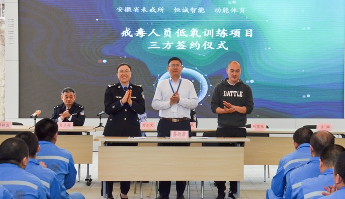 2019年4月19日上午,安徽省未戒所與合肥恒誠智能技術有限公司及動能體育在蜀山區(qū)舉行了“戒毒人員低氧訓練項目三方戰(zhàn)略合作協(xié)議”的簽約儀式。