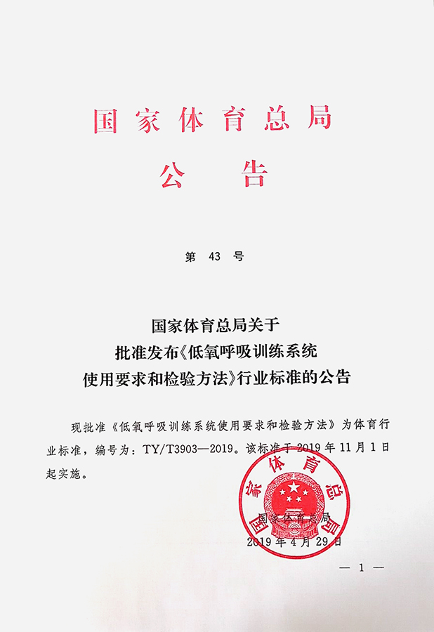 合肥恒誠(chéng)智能技術(shù)有限公司《低氧呼吸訓(xùn)練系統(tǒng)使用要求和檢驗(yàn)方法》行業(yè)標(biāo)準(zhǔn)經(jīng)過了起草、征求意見、審查、報(bào)批等一系列流程,于4月29日正式獲批發(fā)布,編號(hào):TY/T3903-2019,標(biāo)準(zhǔn)于2019年11月1日起實(shí)施。