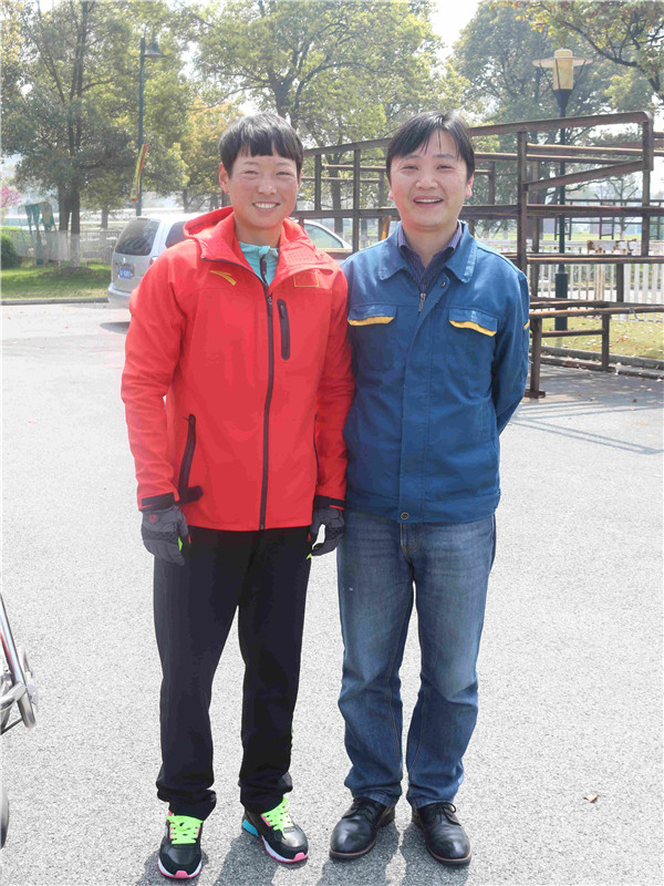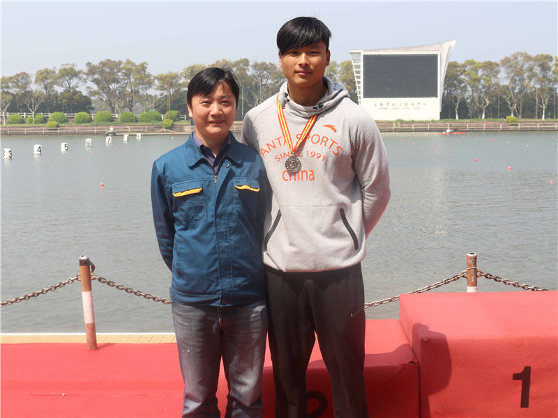 我司工作人員與200米男子單人雙槳冠軍儲(chǔ)友勇合影